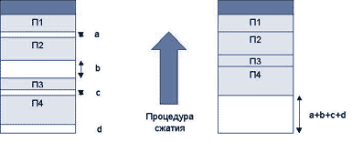 Рис.11 Распределение памяти перемещаемыми разделами. Недостаток этого метода – низкая производительность.