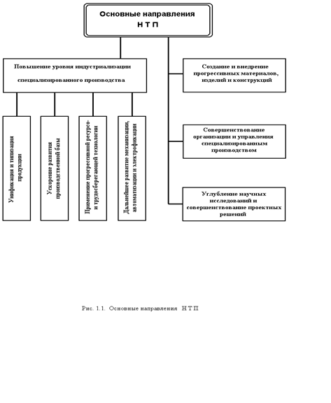 3. НТП и основные направления в области организации, управления и планирования строительством НТП способствует снижению затрат труда и стоимости объектов строительства, повышению их качества, улучшению условий труда работающих, а в результате - достижение высокой эффективности инвестиций. Научно-технический прогресс - это непрерывный процесс развития и совершенствования средств труда (машин, оборудования, механизмов), предметов труда (материалов, изделий, конструкций) и способов воздействия средств труда на предметы труда (технологии, организация, планирование и управление производством) на основе достижений науки и техники (рис. 1). Эти три направления НТП взаимосвязаны и комплексно воздействуют на повышение производительности труда. Достижение прогресса по любому из этих направлений влияет на повышение эффективности производства в целом. К основным направлениям в научно-техническом прогрессе в строительстве относятся: - разработка новых прогрессивных технических решений при составлении проектной документации, включающих проектирование зданий, обладающих повышенной гибкостью и облегчающих их перепланировку и размещение оборудования при модернизации производства, позволяющих объединять основные и вспомогательные производства с целью снижения затрат на внутрицеховой транспорт, инженерные коммуникации и др.; - создание и внедрение в строительство новых эффективных материалов, конструкций и деталей, предусматривающих применение сборных конструкций из легкого бетона, дерева, алюминия, полимерных материалов, что способствует увеличению темпов строительства вследствие укрупнения конструкций, удешевления транспортных и монтажных процессов; - совершенствование организации и управления строительным производством: внедрение комплексно- механизированных процессов, преследующих цель исключить тяжелый ручной труд на строительных площадках, сократить продолжительность строительства, удешевить СМР, внедрить поточные методы, способствующие превращению строительства в ритмичное круглогодичное производство, близкое по своей сути к конвейерному; - использование моделирования строительного производства, математических моделей, вариантного проектирования организации и технологии производства, персональных ЭВМ для проектирования и расчетов, переход к применению автоматизированных систем управления строительством (АСУС).