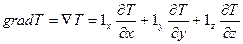 где Градиент обозначается также символом (набла). Составляющие градиента по осям декартовых координат равны соответствующим частным производным так что