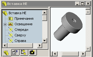 ![]() "Изменить состояние погашения". При нажатии на этот инструмент появляется панель, представленная на рисунке. О том, что такое погашенный элемент, мы только что поговорили. Сокрашенный элемент (легковесный) также ускоряет работу с большими сборками. Но не столь радикальным метолом, как погашение элементов. Когда деталь является легковесной, в память загружается только сокращенная версия данных ее модели, содержащая только внешнюю геометрию. Визуально это выглядит как исчезновение дерева построения у модели в дереве сборки и появление рядом с изображением модели значка в виде пера. При выборе детали в дереве конструирования или в графической области происходит ее решение.