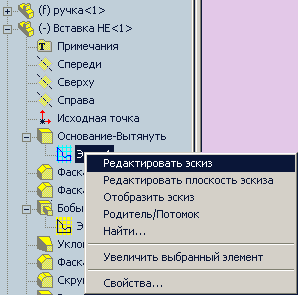 При создании сборки, помимо добавления новых компонентов и установки сопряжений, существует возможность редактировать все компоненты, входящие в сборку. Чтобы отредактировать какой-либо эскиз или определение любого компонента, разверните дерево конструирования этого компонента и нажмите правой кнопкой на том элементе, который вы хотите отредактировать. В контекстном меню выберите "редактировать эскиз" или "редактировать определение" в зависимости от того, что вы собираетесь редактировать. SolidWorks автоматически войдет в режим редактирования компонента, выделив дерево конструирования редактируемой детали розовым цветом. Редактирование детали в сборке предоставляет больше возможностей, чем редактирование ее отдельно. В эскизах, создаваемых во время редактирования детали в сборке, может использоваться любая кромка или грань любой детали. Размеры можно указывать также относительно любой кромки или грани любой детали. Для элементов могут использоваться дополнительные конечные условия, например, "до поверхности", "до другого компонента". Находясь в режиме редактирования, вы видите всю сборку целиком. При изменении компонента в сборке, автоматически изменяется и файл этого компонента. Более того, если одновременно со сборкой в другом окне открыт этот компонент, то он также изменится.