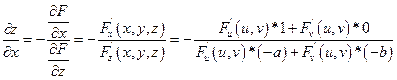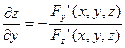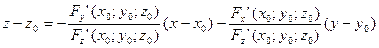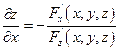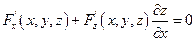 Поверхность задана неявно уравнением: F(x,y,z)=0. По правилу дифференцирования неявных функций известно, что: