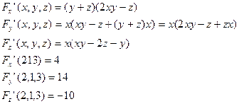 Если функция F(x,y,z) определена и непрерывна вместе со своими частными производными F'x(x,y,z), F'y{x,y,z), F'z(x,y,z) в некоторой точке