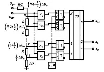 Рис. 4.19 Схема реверсивного ЦАП с резисторной матрицей постоянного сопротивления