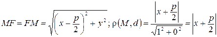 Тогда Таким образом, доказано, что уравнение (42) есть уравнение параболы Чтобы изобразить параболу по ее каноническому уравнению, исследуем геометрические свойства параболы.