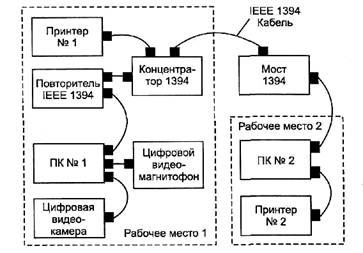 Рис. 14. Соединение разнотипных устройств в сеть с использованием IEEE 1394
