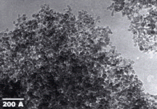 В 1980-е гг. в нашей стране было обнаружено, что при динамическом нагружении углеродсодержащих материалов могут образовываться алмазоподобные структуры, получив- шие название ультрадисперсных алмазов (Даниленко, 2004; 2005). В настоящее время всё чаще применяется термин «на- ноалмазы». Условия образования наноалмазов могут быть реализо- ваны при детонации взрывчатых веществ с значительным от- рицательным кислородным балансом, например смесей тро- тила с гексогеном. Наноалмазы, получаемые методом детона- ции из углерода взрывчатых веществ (рисунок 1.14), отлича- ются чрезвычайно узким распределением частиц по размерам. Основная масса частиц имеет размер около 4 нанометров. В одной такой частице около 10 тысяч атомов углерода. Таким образом, наноалмазы являются наиболее крупными предста- вителями наноуглерода. Напомним, что в молекулах их близких родственников, диамондоидов, количество атомов углерода не превышает нескольких десятков. Рисунок 1.14 Микрофотография детонационных наноалмазов. В природных средах наноалмазы, как правило, не при- сутствуют. Иногда их находят в метеоритах. Однако высокие температуры и давления, необходимые для образования на- ноалмалов, могут быть реализованы при ударах небесных тел о поверхность Земли в присутствии углеродсодержащих ма- териалов (органика, торф, уголь и пр.). Так, наноалмазы бы- ли обнаружены в лесной подстилке в зоне падения Тунгус- ского метеорита._