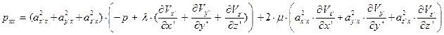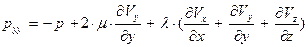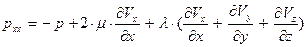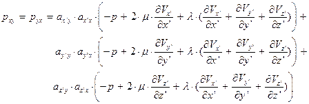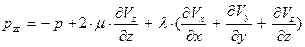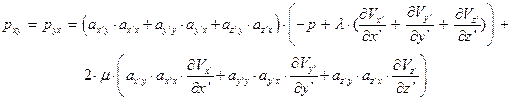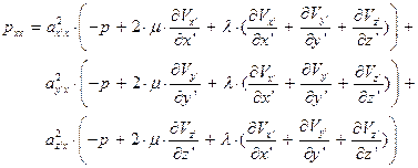 Используем в уравнении (97) закон трения Стокса в главной системе координат – заменим нормальные напряжения их зависимостями от деформаций по уравнениям (36-38):