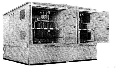 Типы выполнения подстанций напряжением 6(10)/0,4÷0,66 кВ достаточно многообразны, поэтому рассмотрим лишь некоторые из них. На рисунках 11.12 и 11.13 приведены внешние виды КТП промышленного типа (КТПП) и блочного КТП в бетонной оболочке (БКТПБ).