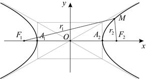 Выше было отмечено, что верно и обратное, т.е. любая точка гиперболы удовлетворяет уравнению (4). Следовательно, фигура является гиперболой. Точки и являются фокусами этой гиперболы.