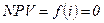 Внутренняя норма доходности. Рассмотрим NPV как функцию от нормы дисконта i для ситуации, когда инвестиции осуществляются в начале расчетного периода