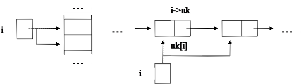 а) в векторе: i = i+1; б) в списке: i = i->uk; (или i = uk[i];) Рис. 16.1. Переход к следующему элементу