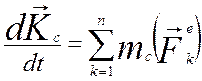 Теорема. Производная по времени от кинетического момента механической системы относительно некоторого неподвижного центра равна геометрической сумме моментов всех внешних сил, действующих на систему, относительно того же центра.