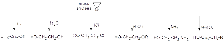 Напряженность трехчленного цикла усугубляется поляризацией связей под действием гетероатома. Циклические атомы углерода приобретают δ+ -заряды и могут быть атакованы нуклеофилом: