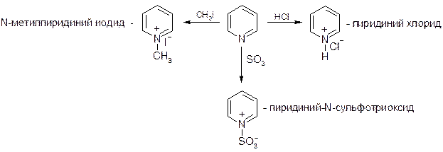 Пиридин – ароматическое соединение. Особенности его свойств определяются: 1) наличием свободной, не вовлеченной в ароматическое сопряжение, электронной пары у атома азота, что обусловливает основные и нуклеофильные свойства пиридина; 2) π-дефицитностью углеродных атомов (более электроотрицательный N-атом стягивает на себя электронную плотность), это затрудняет атаку С-атомов электрофилами и делает возможной атаку их нуклеофилами.