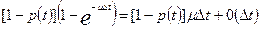 где μ — вероятность восстановления работоспособности системы в единицу времени при условии, что до этого времени восстановления не произошло. По теореме сложения вероятностей несовместных событий вероятность работоспособного состояния системы в момент времени (t+∆t) равна