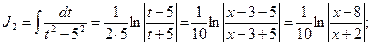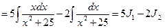 В последнем преобразовании мы воспользовались свойствами аддитивности и однородности неопределенных интегралов. Найдем каждый из интегралов в отдельности. Первый интеграл вычисляется с помощью очевидной подстановки, второй является табличным интегралом.