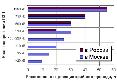 Границы санитарно-защитных зон для ЛЭП в г. Москве