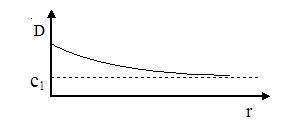 Посмотрим теперь, что происходит с ударной волной на большом удалении от места ее возникновения. В результате интенсивных необратимых энергетических потерь в ударной волне, а также вследствие дивергенции (расхождения) волны ее интенсивность с удалением от места возникновения падает, то есть при r ® ¥ DE ® 0, DP ® 0, D r ® 0. Скорость ударной волны D, которая больше скорости звука в невозмущенной среде, где распространяется ударная волна, определяется соотношением