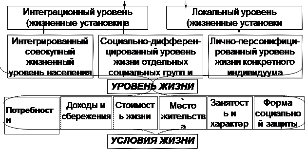 Рис. 11. Взаимосвязь понятий – уровень, образ и условия жизни.