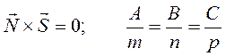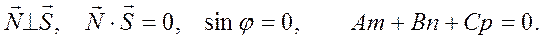 Для того, чтобы прямая и плоскость были перпендикулярны, необходимо и достаточно, чтобы вектор нормали к плоскости и направляющий вектор прямой были коллинеарны. Это условие выполняется, если векторное произведение этих векторов было равно нулю.