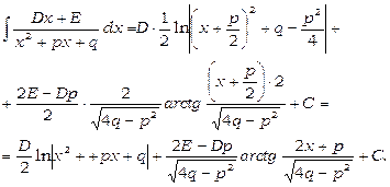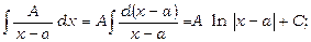 I. II. III. IV. У всіх чотирьох випадках передбачається, що А, В, D, E, G, F, р, q, r, s, a, b – дійсні числа. Перераховані дроби будемо відповідно називати найпростішими дробами I, II, III й IV типів. Розглянемо інтеграли від найпростіших дробів перших трьох типів. Інтеграли від найпростіших раціональних дробів першого та другого типів знаходять методом безпосереднього інтегрування. Маємо