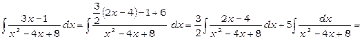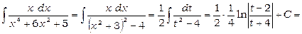 8) Підінтегральна функція є правильним раціональним дробом і можна було б знайти інтеграл, представивши цей дріб у вигляді суми найпростіших дробів. Однак знаходження інтеграла можна значно спростити, якщо зробити заміну змінної