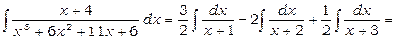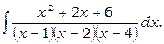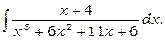 6) Оскільки що підінтегральна функція є правильним дробом, то її слід одразу представити у вигляді суми найпростіших дробів. Легко бачити, що многочлен