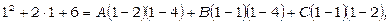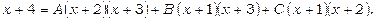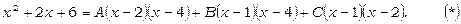 звідки 9=3 А, тобто А =3. Вважаючи х =2, одержуємо 14=-2 В, тобто В =-7; вважаючи х =4, маємо 30=6 С, тобто С =5. У результаті вийшли ті ж значення, що й при першому способі визначення невідомих. Таким чином,