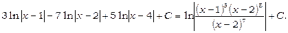 з якої знайдемо А =3, В =-7, З =5. Отже, розкладання раціонального дробу на найпростіші має вигляд