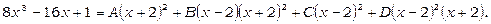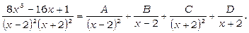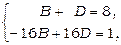 Для того, щоб знайти В і D, складаємо ще одне рівняння. Зрівнявши коефіцієнти при х 3, одержимо 8= В + D. Вирішивши систему рівнянь