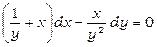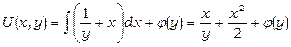Легко перевірити, що останнє рівняння є рівнянням в повних диференціалах, тому маємо