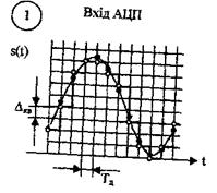 (Для перетворення аналогових сигналів у дискретну та цифрову форму виконують операцію, що називається дискретизацією за часом і яка лежить в основі всіх видів імпульсної модуляції. Процес дискретизації неперервного сигналу зводиться до визначення його відліків u(kТд) в визначені дискретні моменти часу tk через інтервал Тд так як це зображено на рис. 4.7-1.