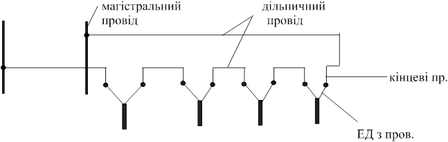 Ел. – підривна мережа – ЕД з проводами, кінцеві проводи (від ЕД до поверхні), дільничні проводи, магістральні проводи.
