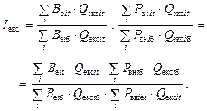 де Е екс — економічна ефективність експорту (виникає у виробників експортної продукції); і — вид продукції, що експортується; Р вн і — внутрішня ціна одиниці продукції і -го виду, що експортується; Q екс і — обсяг експортної продукції і -го виду;