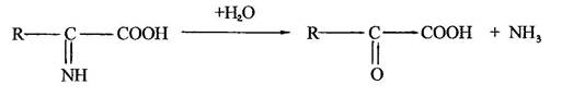 Потім амінокислота приєднуючи воду розпадається на кетокислоту і аміак: