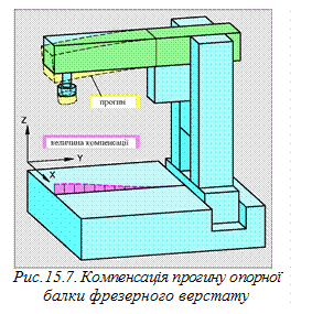 Компенсація напрямку руху. Зміна напрямку руху подачі викликає зміну напрямку дії сил в приводних системах. Сила тяги стає силою опору. При виконанні руху в повному циклі появляються деформації, які наближаються до вигляду, який нагадує контури квадрату (рис. 15.9). Діючі сили викликають еластичні деформації в механізмах передавання руху. Компенсаційні значення цих деформацій можуть бути розміщені у Компенсація кутових відхилень системи осі. Осі руху верстатів не вмонтовані ідеально одна відносно іншої. В зв’язку з цим в компенсаційній таблиці повинні бути також значення, які компенсують ці відхилення.