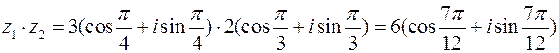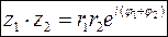 б) Множення та ділення комплексних чисел, заданих у тригонометричній та показниковій формах. При множенні комплексних чисел, заданих у тригонометричній або показниковій формах, їх модулі перемножають, а аргументи додають.