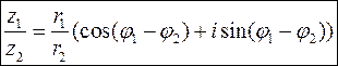 Якщо При діленні комплексних чисел, які задані в тригонометричній або в показниковій формах, їх модулі ділять, а аргументи віднімають.