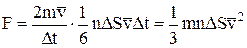 де n – концентрація, тобто число молекул в одиниці об'єму. Визначимо середню силу удару молекул об поверхню. Нехай