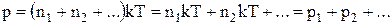 Якщо в посудині знаходиться суміш газів, то тиск суміші може бути знайдений за формулою: