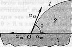 Розглянемо краплю рідини на поверхні твердого тіла. Для рівноваги необхідно, щоб усі сили, що діють на елемент контуру, що перпендикулярний малюнкові в точці О, врівноважувалися. Ці сили складаються із сил поверхневого натягу , що діють уздовж границь розділу між середовищами. Рівнодіюча цих сил врівноважується молекулярними силами твердого тіла, що спрямовані вниз. Тому рівновага забезпечується рівністю нулю сумарної проекції сил на горизонтальний напрямок: . Звідки отримаємо: