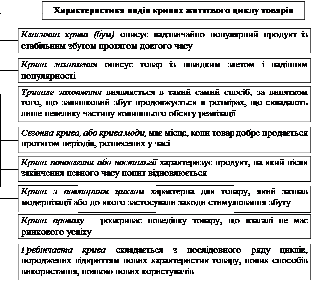 2. Види кривих життєвого циклу товару.