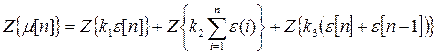 де n = 0,1,2,…; m[n] і e[n] – дискретні значення сигналів цифрового регулятора і похибки відповідно. Запишемо z-перетворення різницевого рівняння (1)