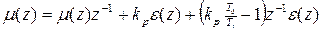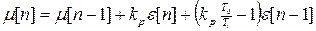 Переписавши у відносному часі, отримаємо рекурентне рівняння ПІ-регулятора з інтегруванням за методом відстаючих прямокутників: