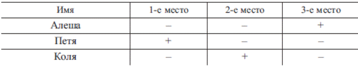Вочевидь, Петя може посісти лише перше місце, тоді Коля - тільки друге, а Алеше дістається третє (табл. 2). Таблиця 2