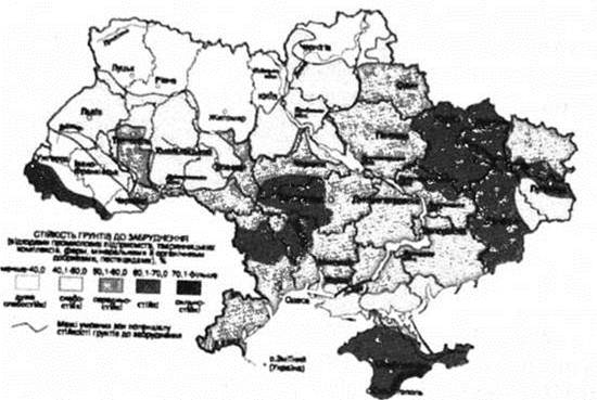 Рис. 13.3. Стійкість ґрунтів України до забруднення та біотичний потенціал природного середовища