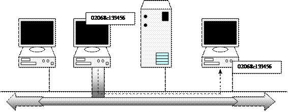 У мережі з топологією «шина» комп'ютери адресують дані конкретному комп'ютеру, передаючи їх по кабелі у вигляді електричних сигналів. Дані у вигляді електричних сигналів передаються всім комп'ютерам у мережі; однак інформацію приймає тільки той, адреса якого відповідає адресі одержувача, зашифрованій у цих сигналах. Причому в кожен момент часу тільки один комп'ютер може вести передачу. Так, як дані в мережу передаються тільки одним комп'ютером, її продуктивність залежить від кількості комп'ютерів, підключених до шини. Чим їх більше, тим повільніше мережа.