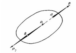 Равнодействующая двух параллельных сил, направленных в одну и ту же сторону, равна сумме этих сил и направлена в ту же сторону; точка приложения равнодействующей делит прямую, соединяющую точки приложения составляющих сил, на части, обратно пропорциональные этим силам. Две параллельные силы направленные в противоположные стороны называются антипараллельными. Равнодействующая двух неравных параллельных сил, направленных в противоположные стороны, равна их разности и направлена в сторону большей силы; ее точка приложения лежит на продолжении линии AB за большей силой и делит внешним образом расстояние между точками A и B на части, обратно пропорциональные составляющим силам. Если твердое тело под действием сил Условие равновесия рычага может быть выражено уравнением