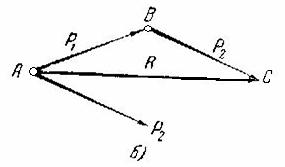 Рис. 1.4 равный половине параллелограмма (рис. 4,а), называется треугольником сил. Разложить одну силу на две составляющие или заменить одну силу двумя пересекающимися силами можно только при следующих дополнительных условиях: 1) Когда две составляющие силы известны по направлению (в этом случае определяется их величина); 2) Когда две составляющие силы известны по величине (тогда определяется их направление); 3) Когда даны равнодействующая R и составляющая 4) Когда даны равнодействующая R, величина одной составляющей, например, Силу на плоскости можно определить аналитически, если известны проекции этой силы на две непараллельные оси. При решении подобных задач берут две взаимно перпендикулярные оси Ox и Oy (рис. 5).